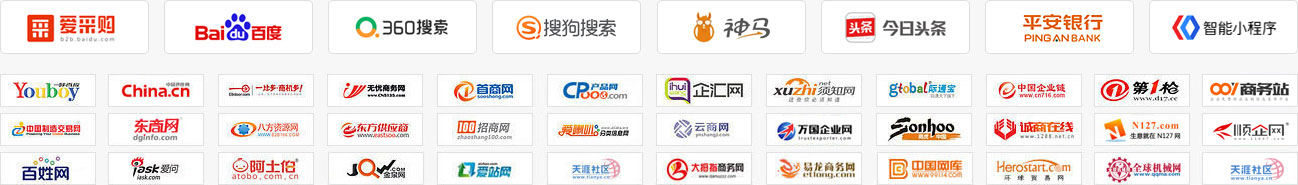 一比多 八方資源網(wǎng) K2商務(wù)網(wǎng) 首商網(wǎng) 無憂商務(wù)網(wǎng) 金屬期貨 蜘蛛客 第一槍 淘金地 萬國企業(yè)網(wǎng) 誠商在線 搜好貨網(wǎng) 供求信息網(wǎng) 如意寶建站 如意問答 最新商機(jī) 中國供應(yīng)商 卓采匯 搜貨寶 100推 企業(yè)聯(lián)合網(wǎng) 領(lǐng)商網(wǎng)